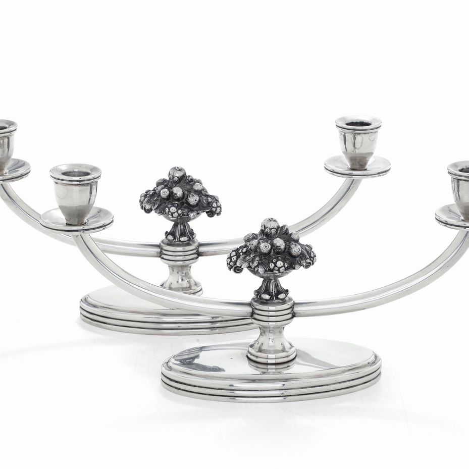 Coppia di doppieri. Argenteria artistica italiana. Prima metà del XX secolo