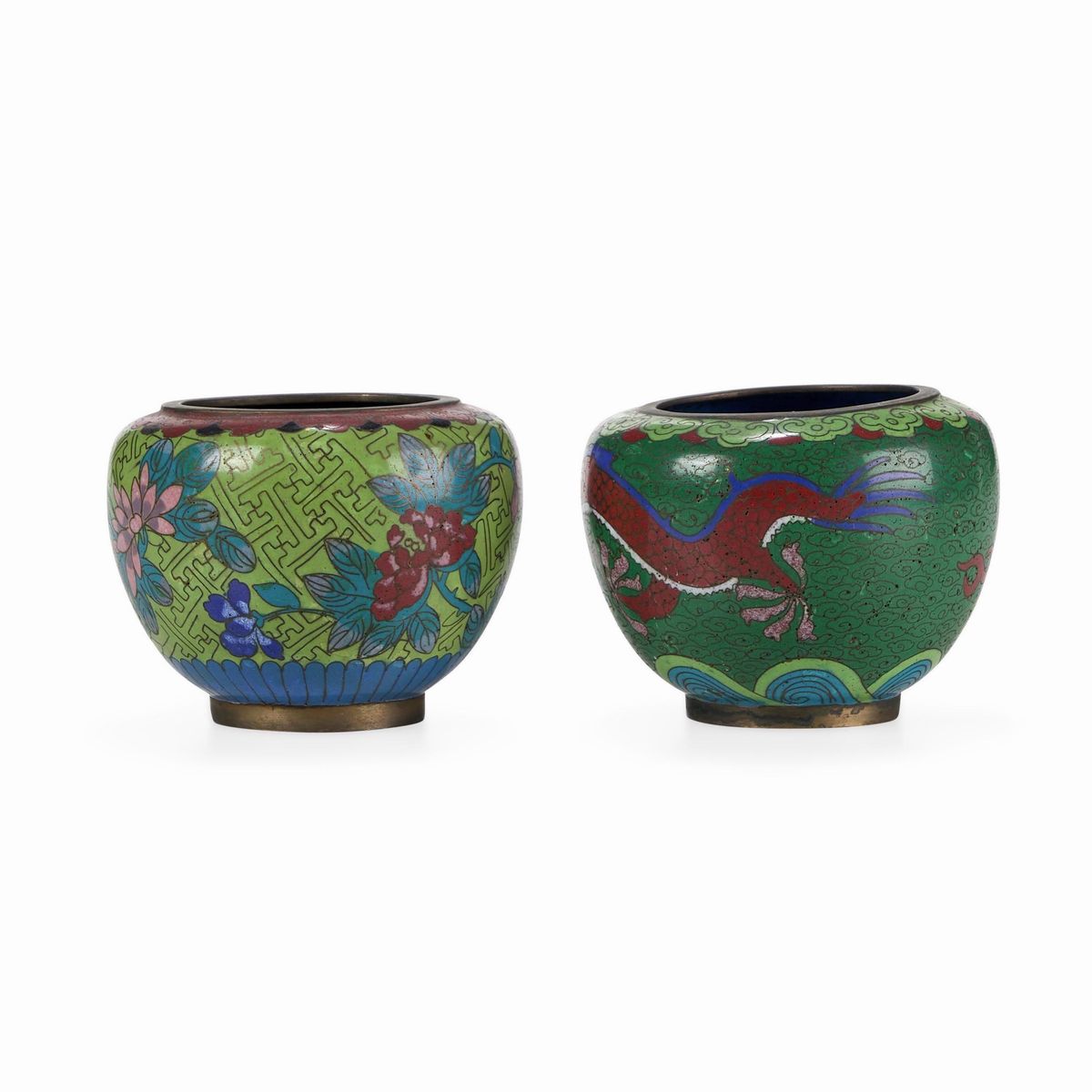 Coppia di vasetti in smalto, Cina, Dinastia Qing, XIX secolo