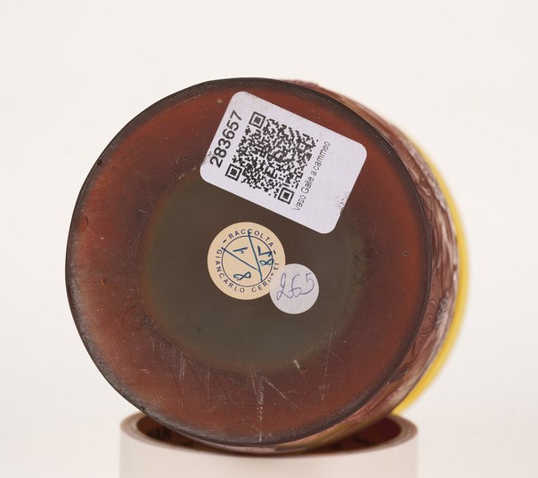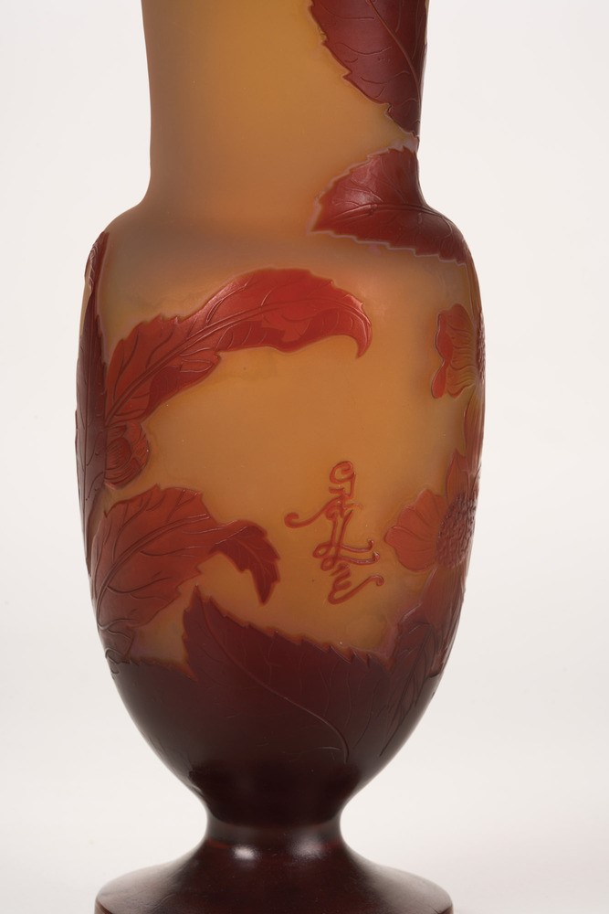 Vaso ad anfora con alto collo a decoro floreale a cammeo.