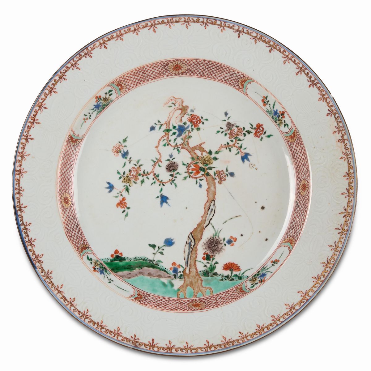 Grande piatto, due vasetti e una tazza con piattino Cina, Dinastia Qing, tra il XVII e il XVIII secolo