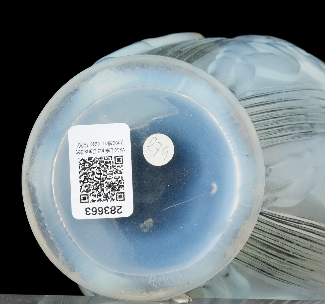 Vaso Danaides in vetro opalescente modellato a stampo.