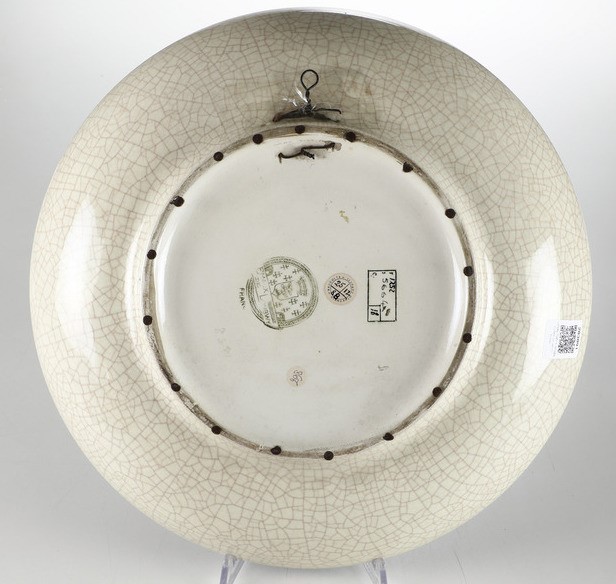 Piatto in terraglia stampato con decoro a smalti di paesaggio esotico.