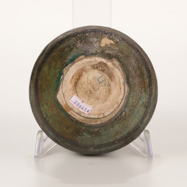 Ceramica artificiale (“fritta”). Dimensioni: altezza cm 14,7 circa; diametro cm 16 circa. Conservazione:ottima; piccola sbeccatura al bordo superiore; craquelures. Provenienza: collezione Luigi Laura, Ospedaletti, come da etichetta cartacea