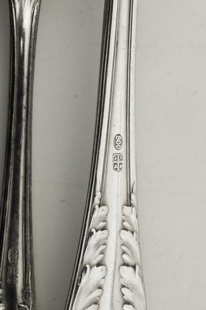 Servizio di posate in argento. Argenteria italiana del XX secolo. Argentiere SIAP, Alessandria