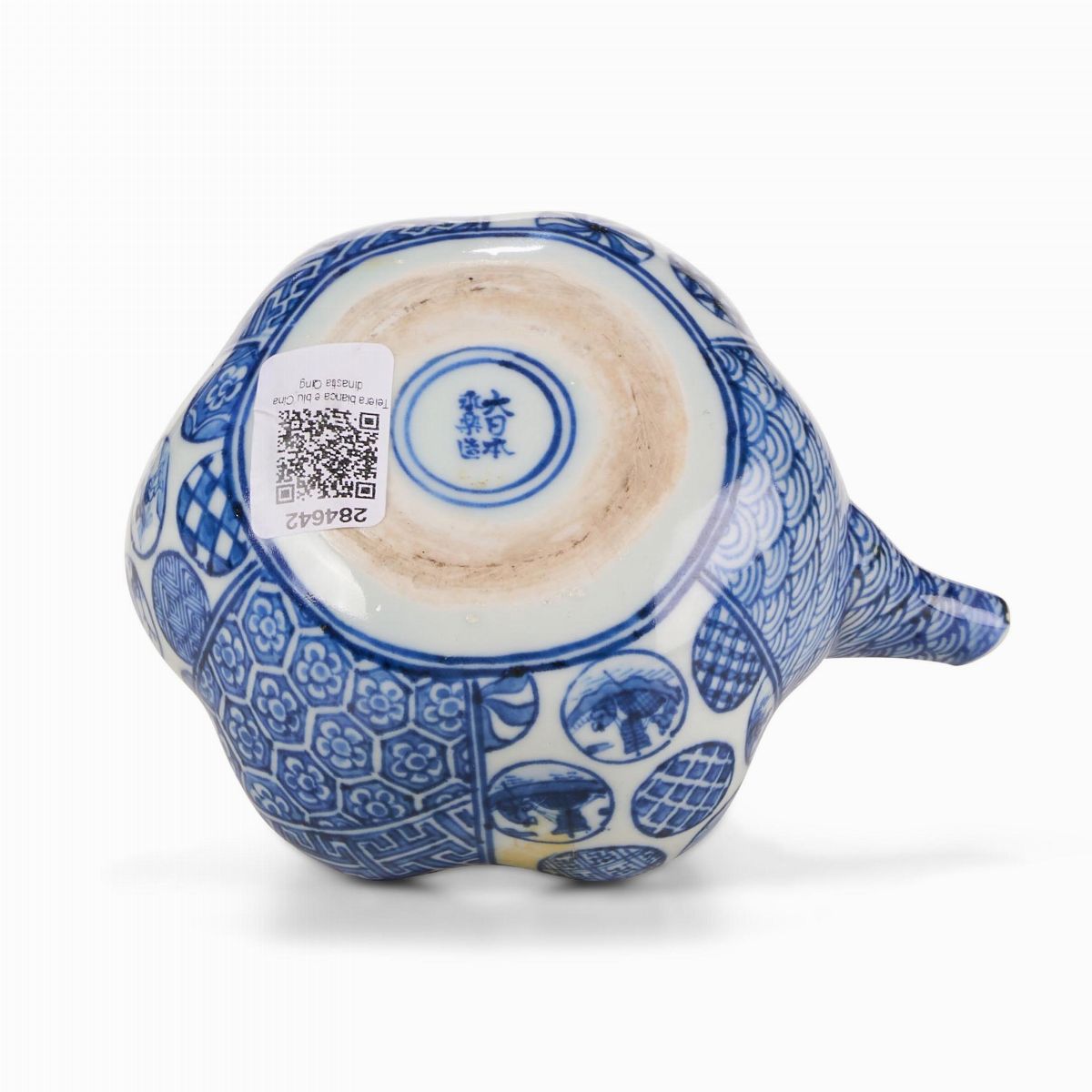 Teiera bianca e blu a riserve circolari e decoro geometrico in porcellana, Giappone, Arita XIX secolo