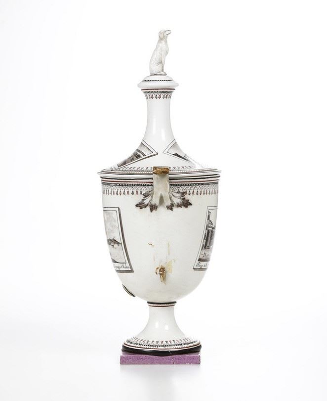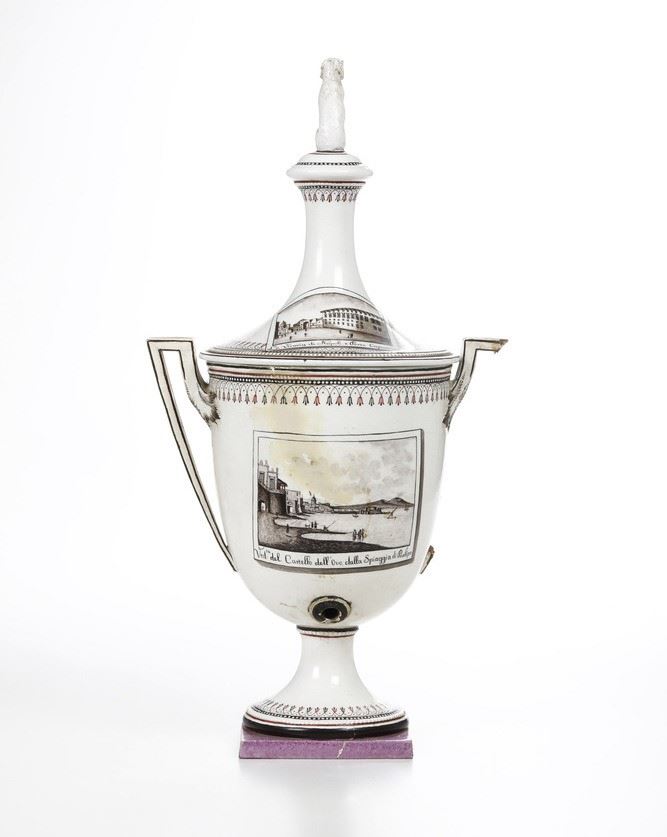 Il vaso è stato trasformato in “fontana”. E' dipinto sul vaso con “Veduta del castello dell’Ovo dalla spiaggia di Posillipo”, “Piazza dello Spirito Santo in Napoli”; sul coperchio con “La vicaria di Napoli e porta Capuana” e “ved:a del largo degli studi di Napoli”