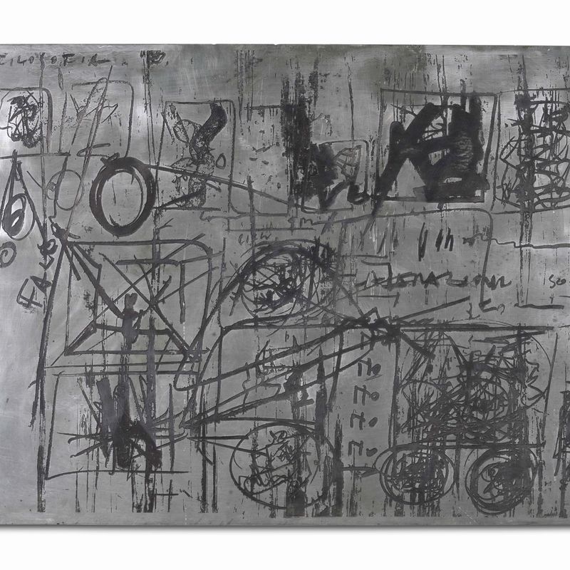 Struttura con decoro inciso nero su zinco.