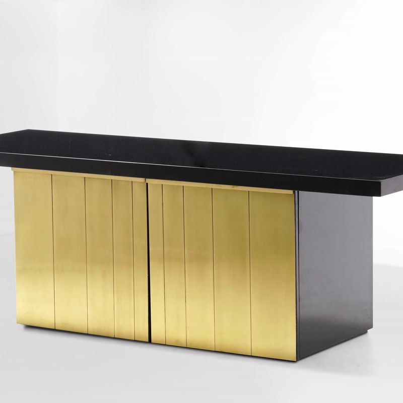 Struttura in legno, legno laccato, legno laminato con rivestimenti in ottone.