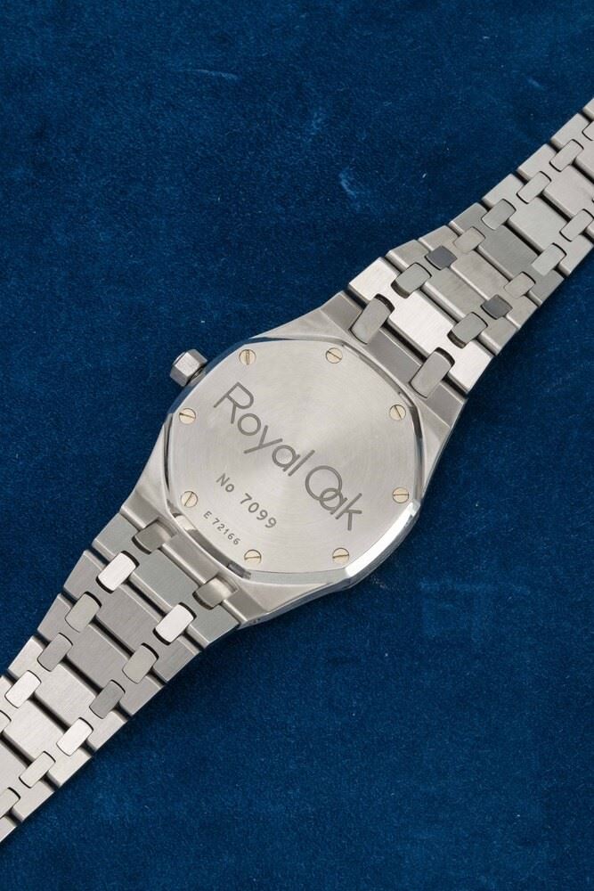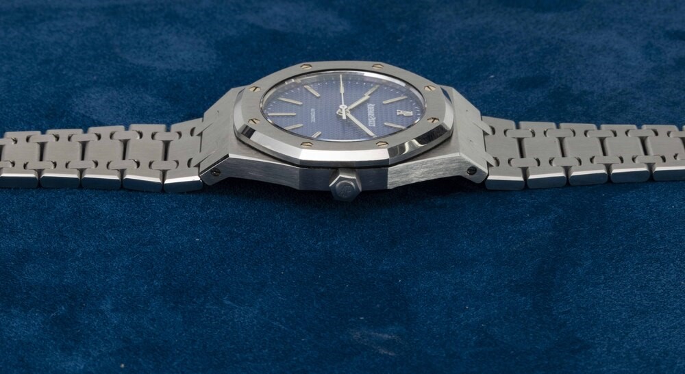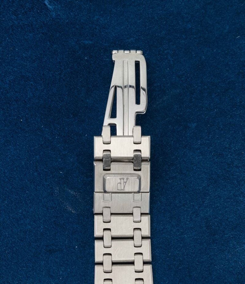 This ref. 14790 retains the more sober "Petite Tapisserie" motif, which forms a square and a lozenge, as seen in previous executions of the Royal Oak.