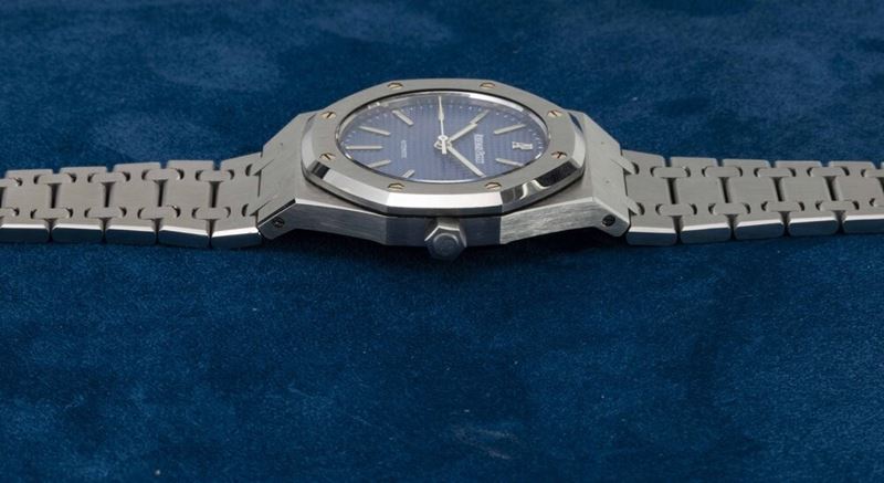 Charming Royal Oak ref 14790 stainless steel with rare electric blue dial "Yves Klein", extra-flat automatic movement accompanied [..]