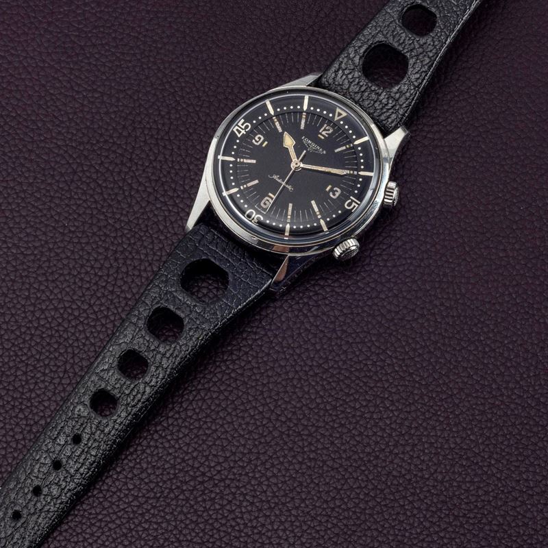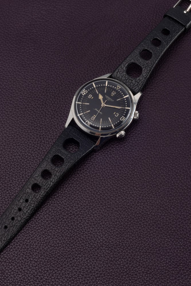 Rare and sought-after Diver Supercompressor double automatic crown, black dial with soft contrast silver graphics, luminescent [..]