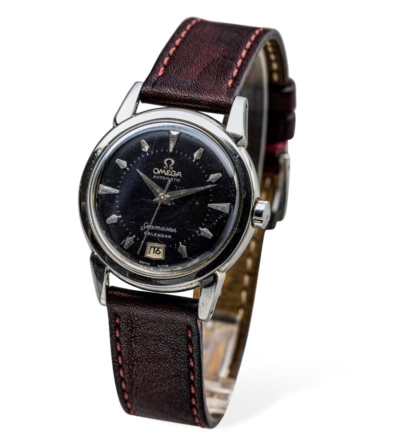 Rare Seamaster in Staybrite steel, with screw bottom, spider lugs, glossy black dial Silver graphic and applied indexes, [..]