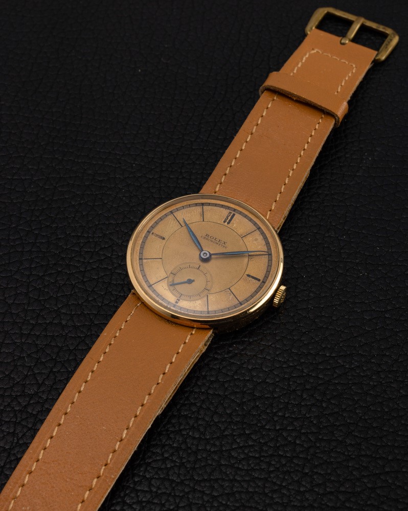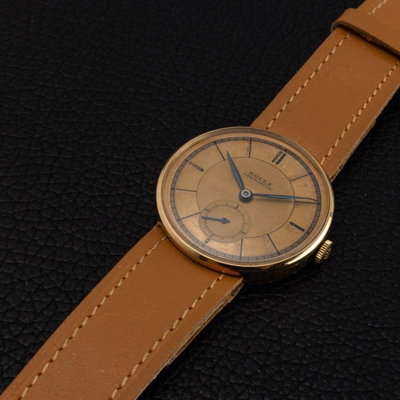 This watch is a fascinating research study of the Rolex production of the twentieth century, its extremely simple lines of the case and the particular absence of loops, allow the dial to be the protagonist of this timepiece.