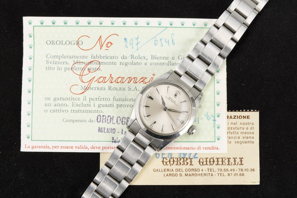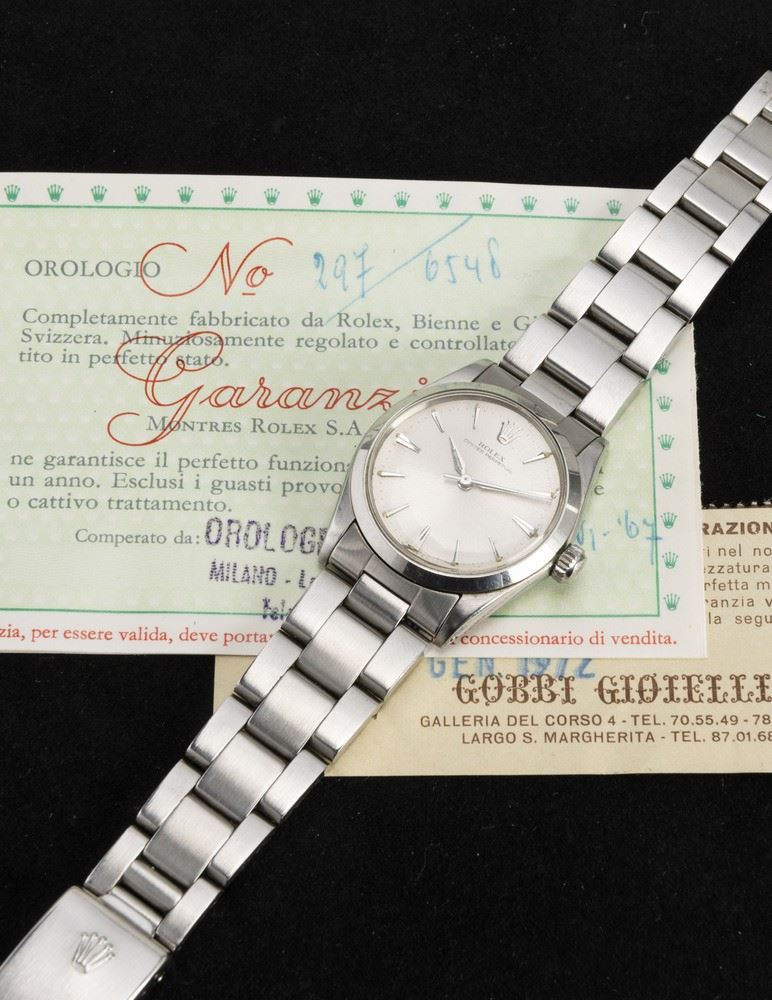 Precious Oyster Perpetual Watch ref 6548 in steel with Silver dial and applied indexes, Oyster bracelet, complete with original box and warranty