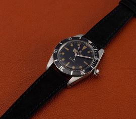 Rare Submariner ref 6536/1 stainless steel case, Gilt black dial "Exclamation Point" with radium lume, metal revolving be [..]