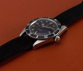 Rare Submariner ref 6536/1 stainless steel case, Gilt black dial "Exclamation Point" with radium lume, metal revolving bezel