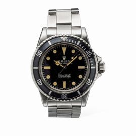 Simple and sporty Submariner ref 5513 "Meter First" in stainless steel, matt black dial with tritium luminescence and metal [..]