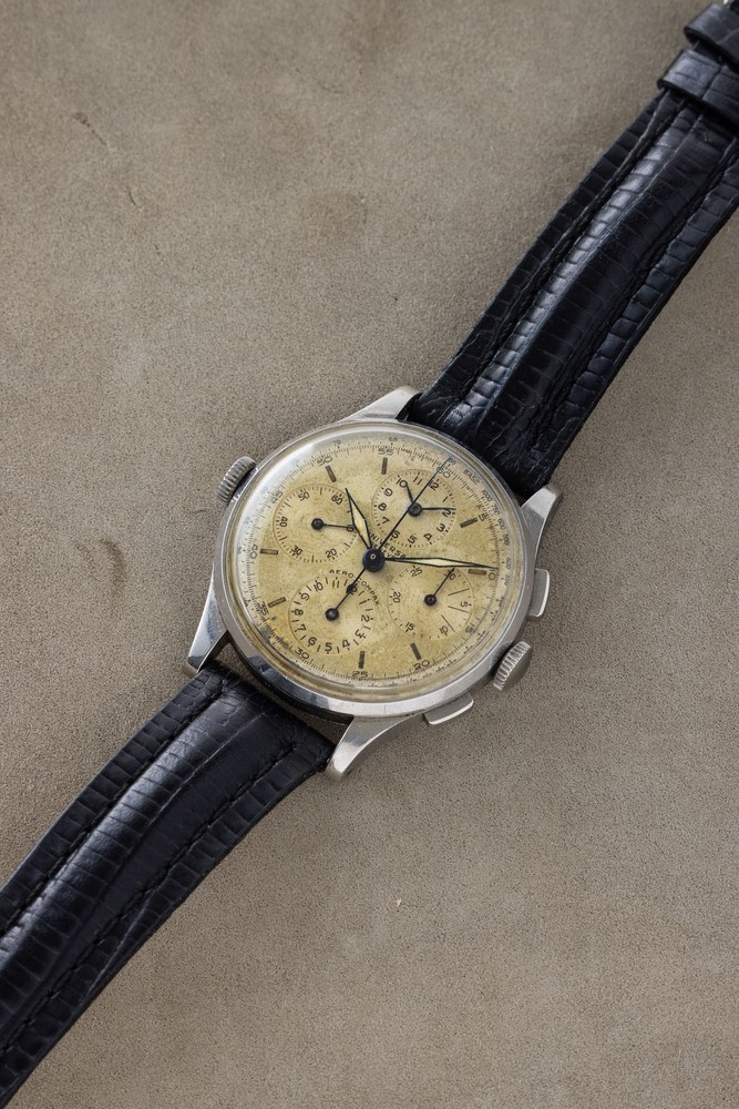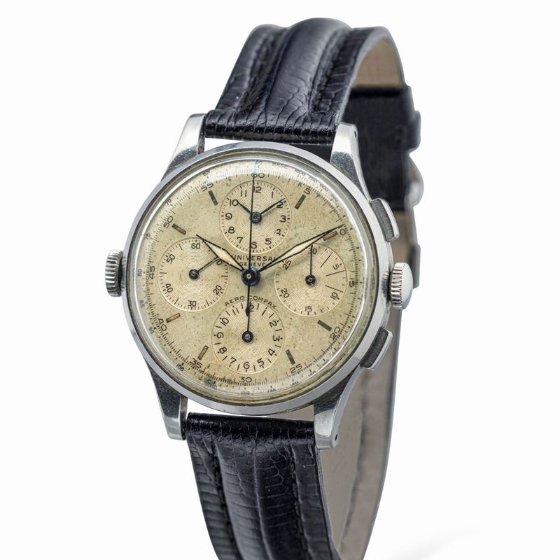 Rare Aero Compax pilot oversize steel, three-counter chronograph with memento dial, square keys screw bottom, luminescent [..]