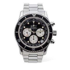 El Primero "De Luca" sports, stainless steel, chronograph three automatic subdials with date display at 5 o'clock, inverted pump buttons, rotating ring, screw bottom