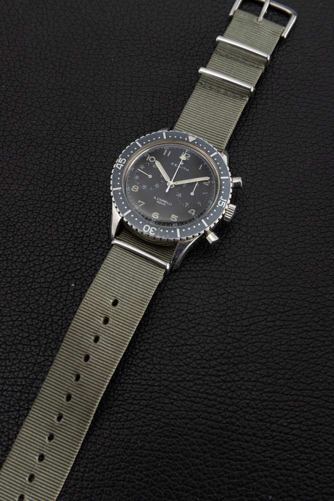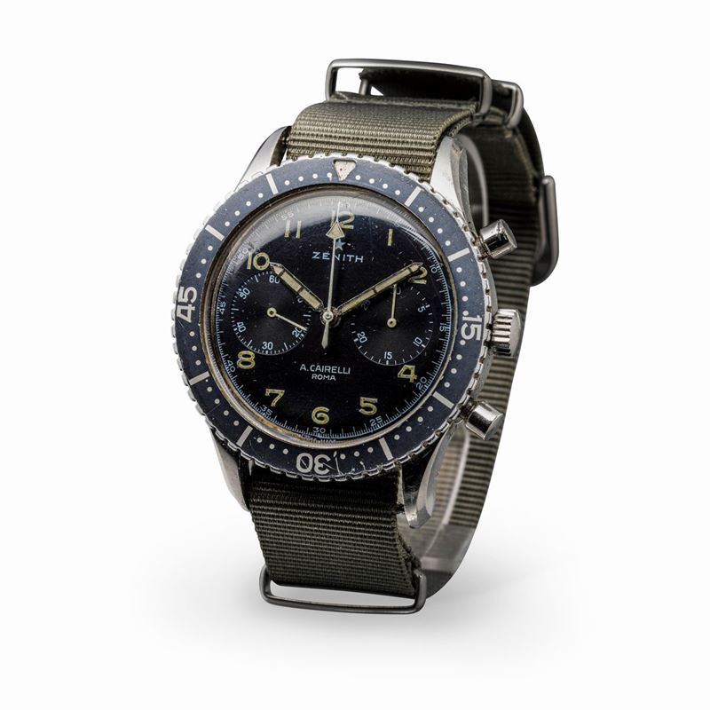 Rare and desirable Cairelli steel with polished black dial, bezel "Ghost" asssegnato AMI case back, rotating bezel with [..]