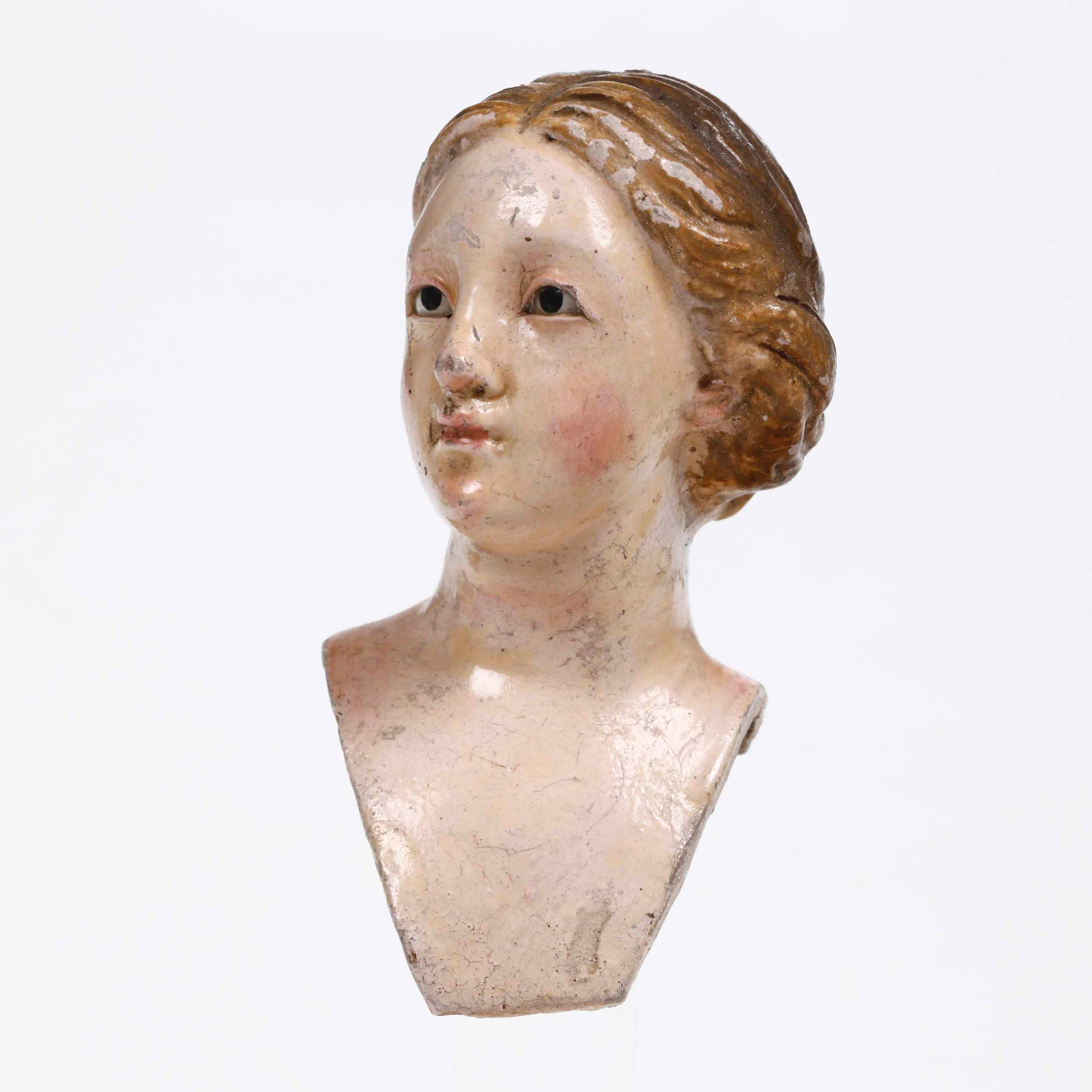 Fanciulla. Testa per statuina da presepe in terracotta. Napoli XIX secolo