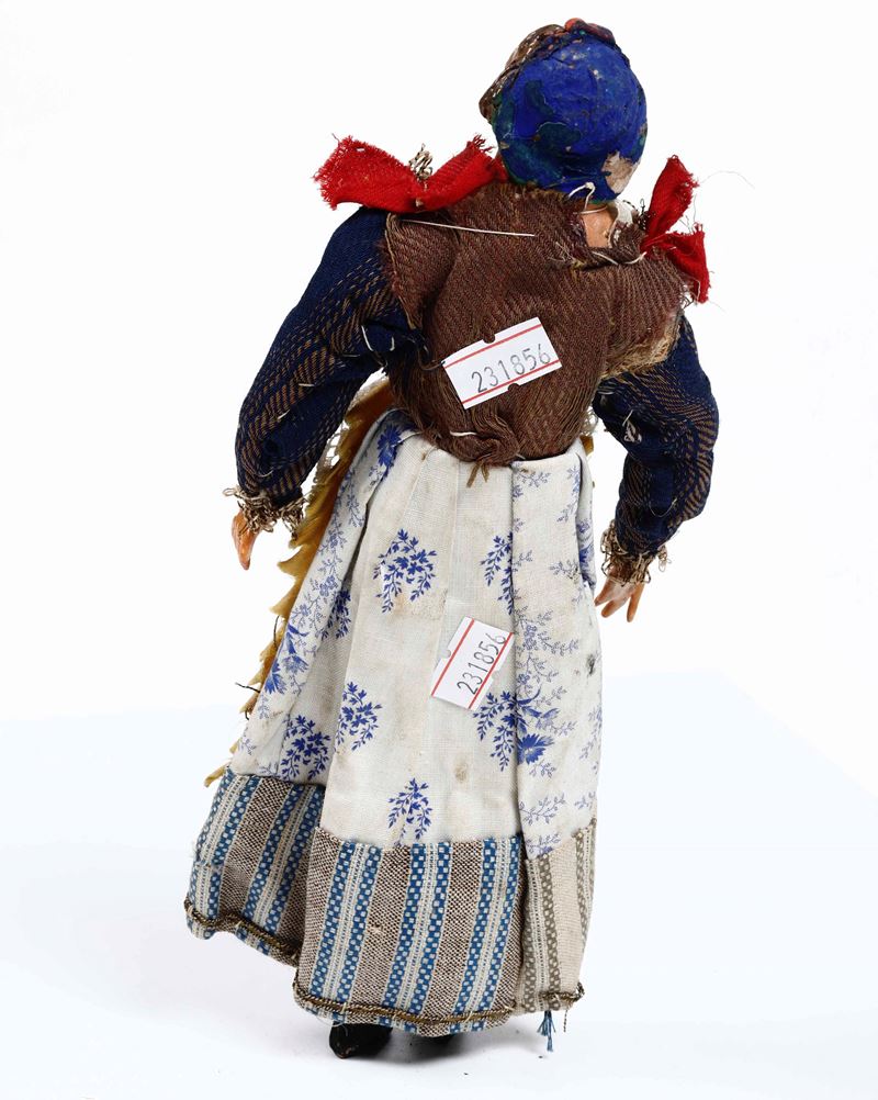 Mani e testa in terracotta. Occhi di vetro, abiti in tessuto.