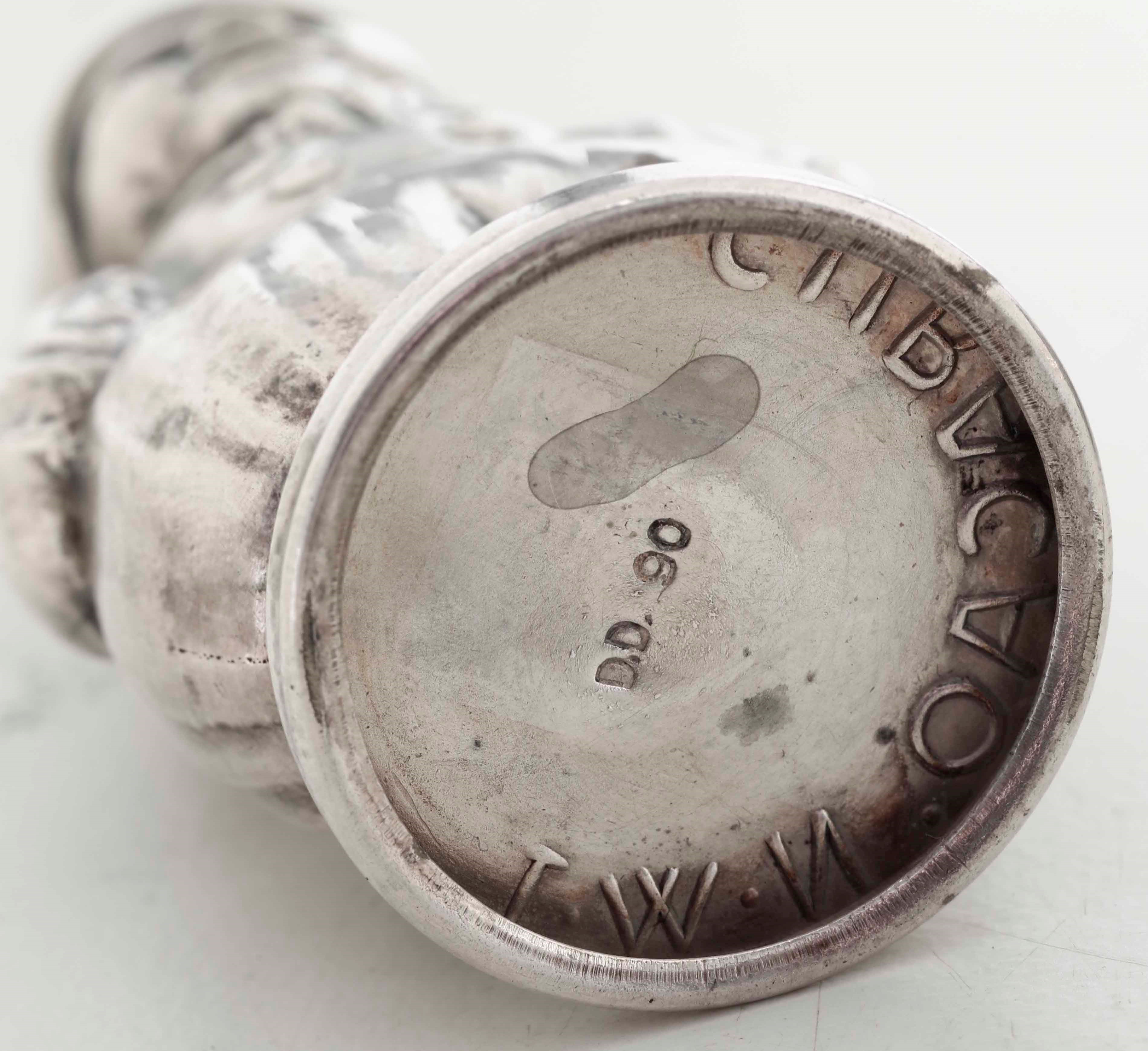 Saliera e pepiera. Metallo argentato. Marchio "DD90" e "Curacao NWI"