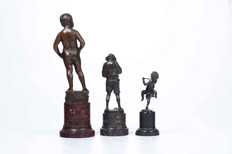 Tre sculture in bronzo di diverso soggetto. Vari fonditori italiani del XX secolo