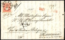 1860, Lombardo Veneto, raccomandata da Venezia per Ravenna del 20 febbraio 1860