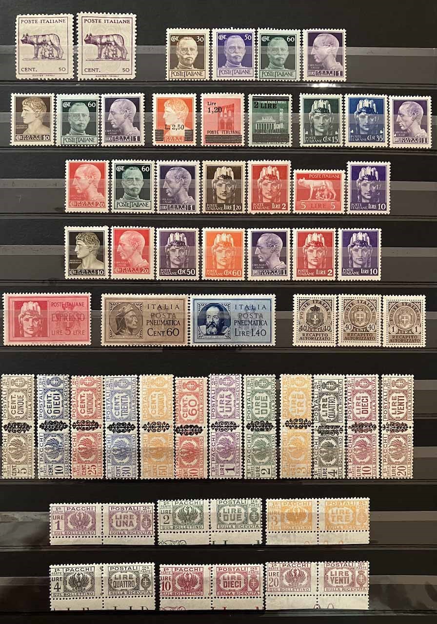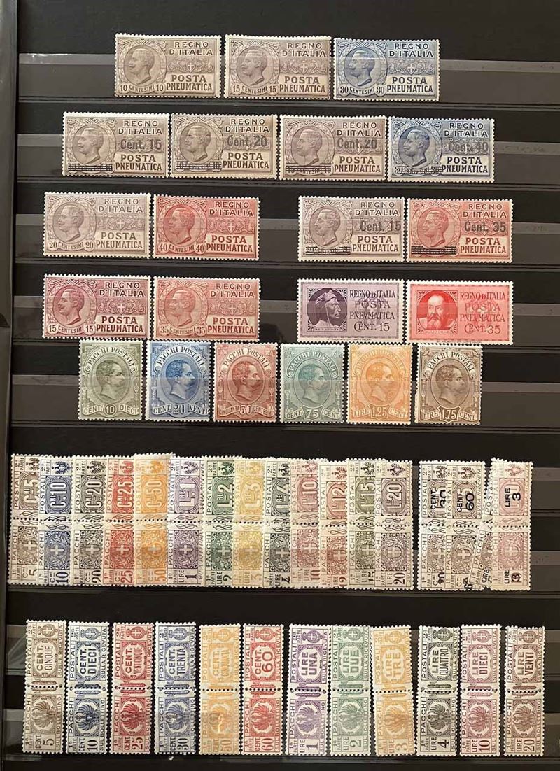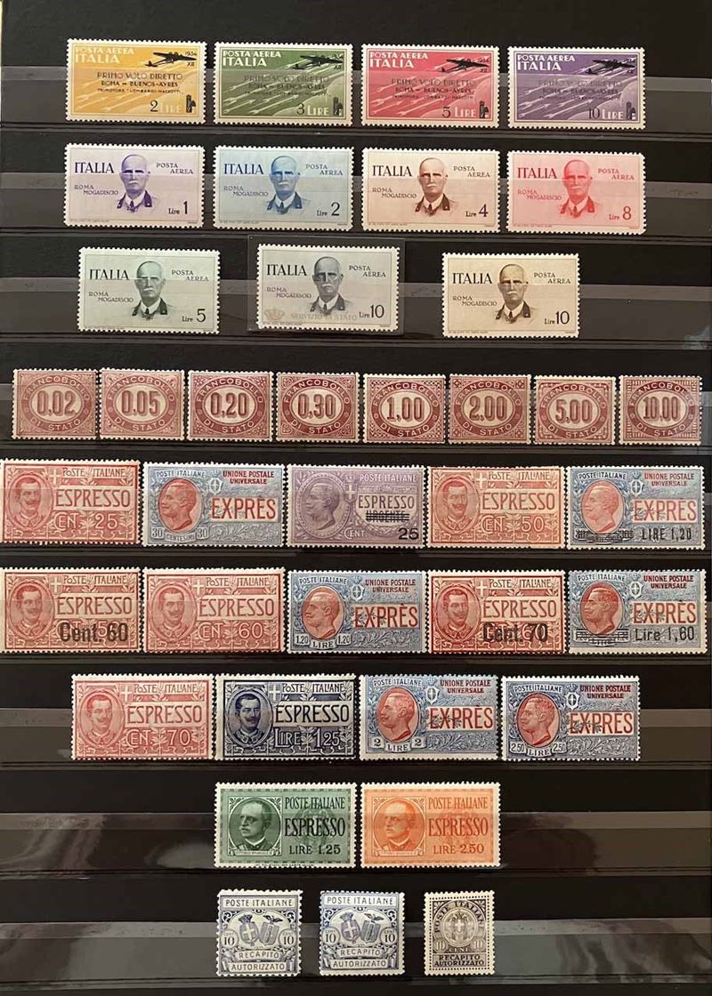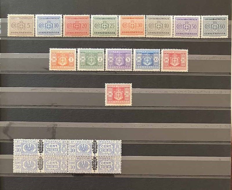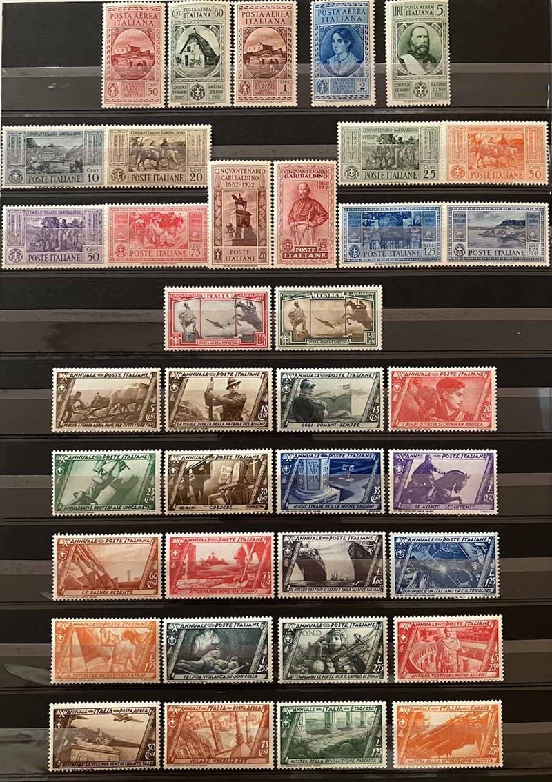 Con traccia di linguella e molte serie con gomma integra, in raccoglitore a taschine. Mancano diversi valori “BLP” e serie degli “Enti Semistatali”. Presenti valori “G. N. R.” e tredici certificati peritali. Inoltre, qualche emissione di Occupazioni, CLN, Fiume, ecc. Buona qualità, da esaminare, alto valore.