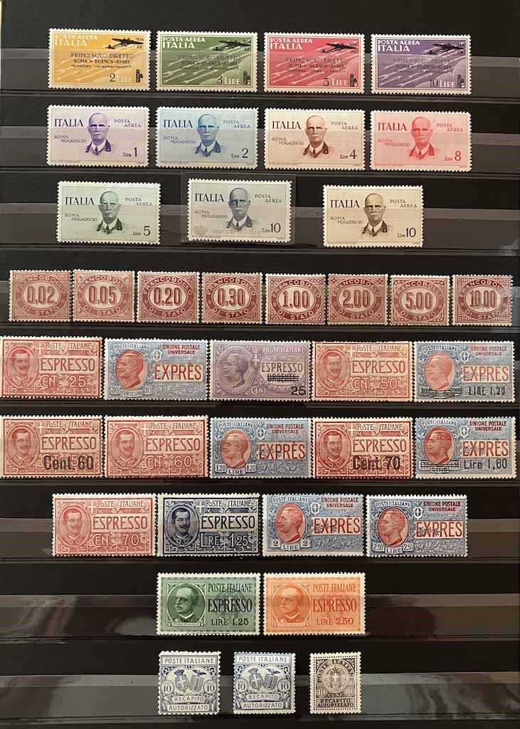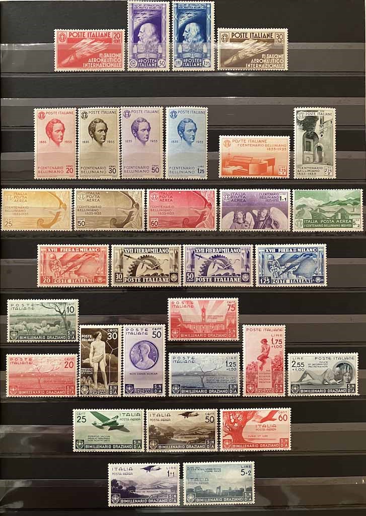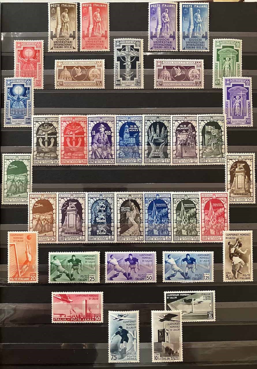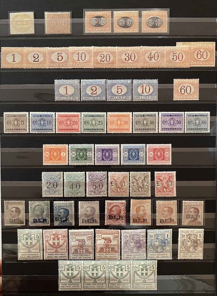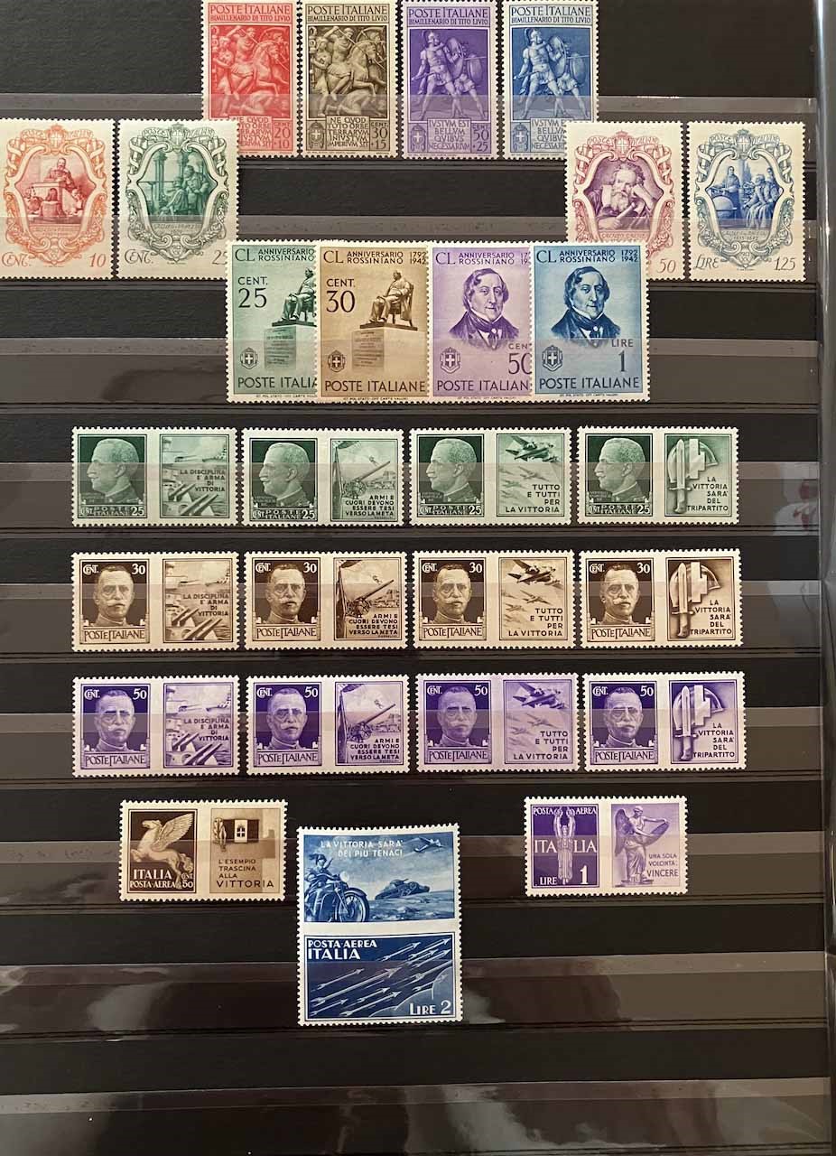 Con traccia di linguella e molte serie con gomma integra, in raccoglitore a taschine. Mancano diversi valori “BLP” e serie degli “Enti Semistatali”. Presenti valori “G. N. R.” e tredici certificati peritali. Inoltre, qualche emissione di Occupazioni, CLN, Fiume, ecc. Buona qualità, da esaminare, alto valore.