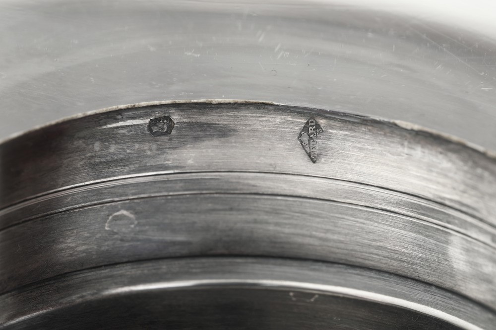 Coppa in argento primo titolo e e vetro molato. Francia, XX secolo. Argentiere Tetard, Parigi