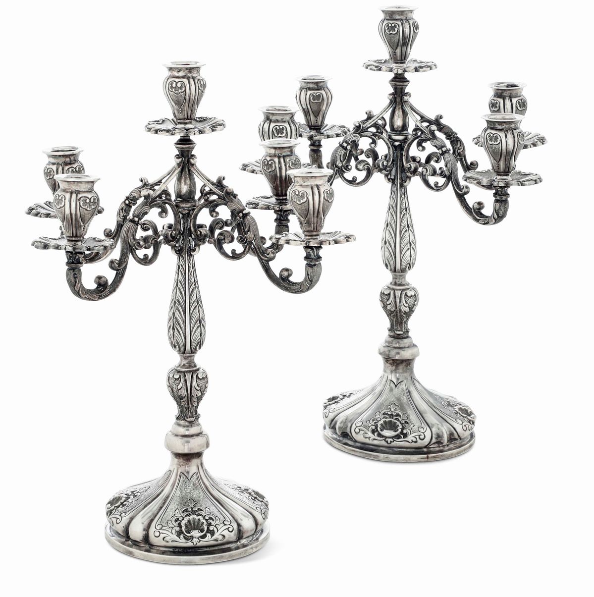 Coppia di candelabri. Argenteria italiana del XX secolo (apparentemente privi di punzonatura)