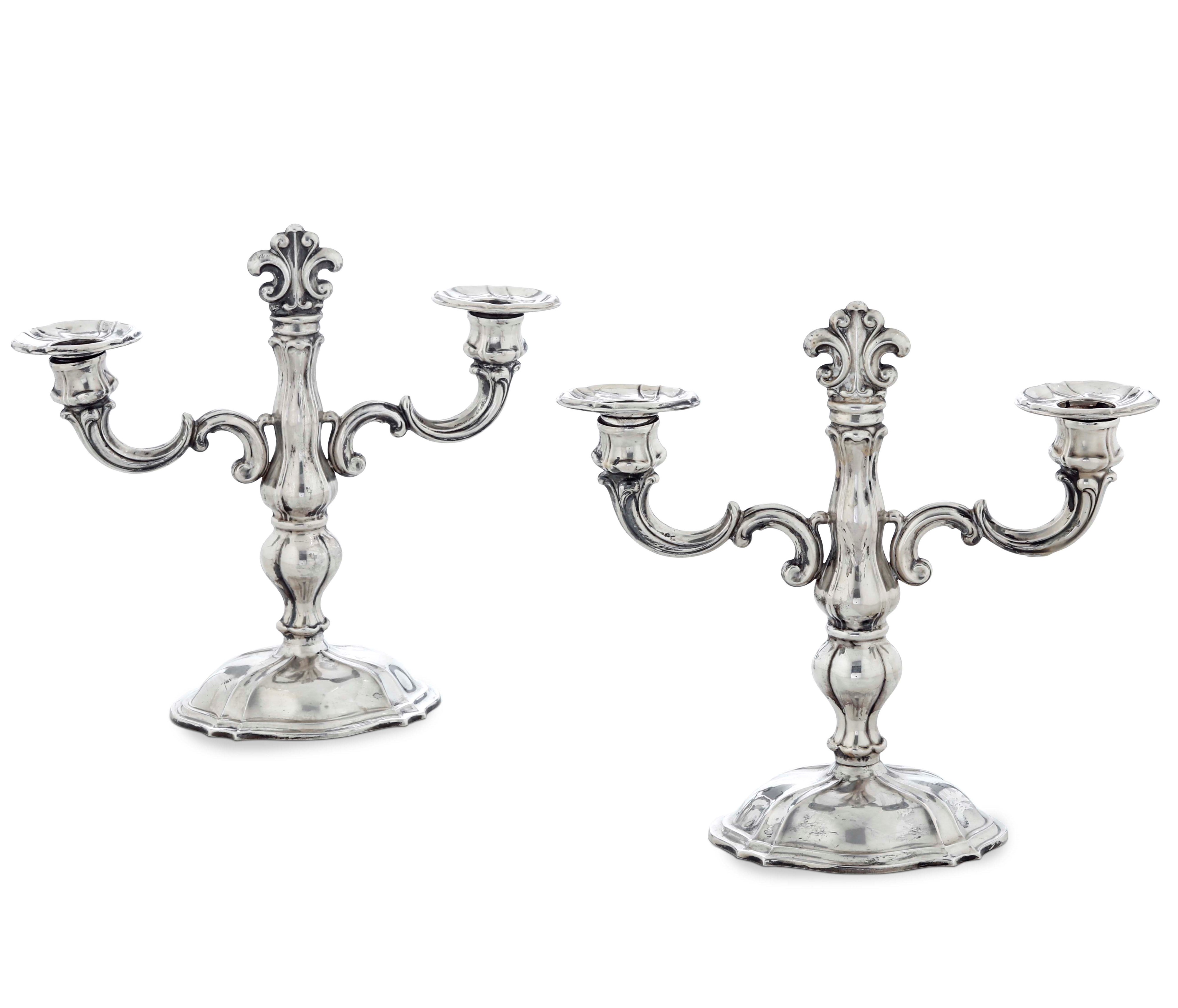 Coppia di doppieri. Argenteria italiana del XX secolo. Argentiere Castaudi & Gautiero, Vercelli