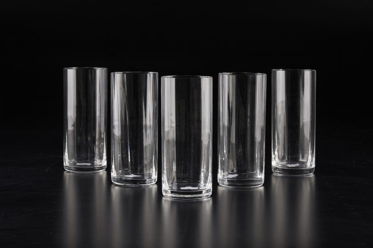 Cristallo. Marca: “Carlo Moretti” inciso alla base di ogni bicchiere. Dimensioni: altezza cm 15,1. Conservazione: ottima
