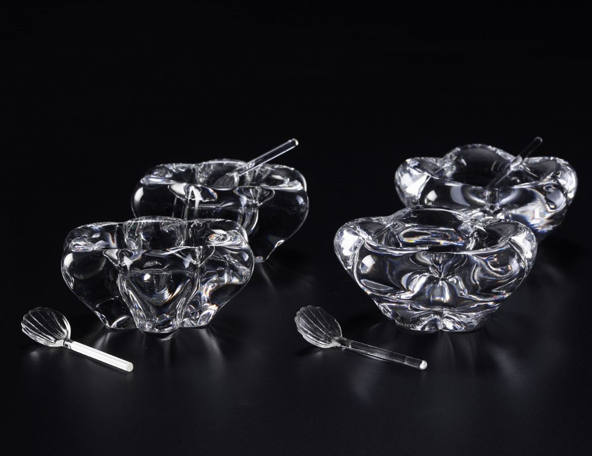 Due coppie di saliere con cucchiaino Francia, Manifattura Daum, seconda metà XX secolo