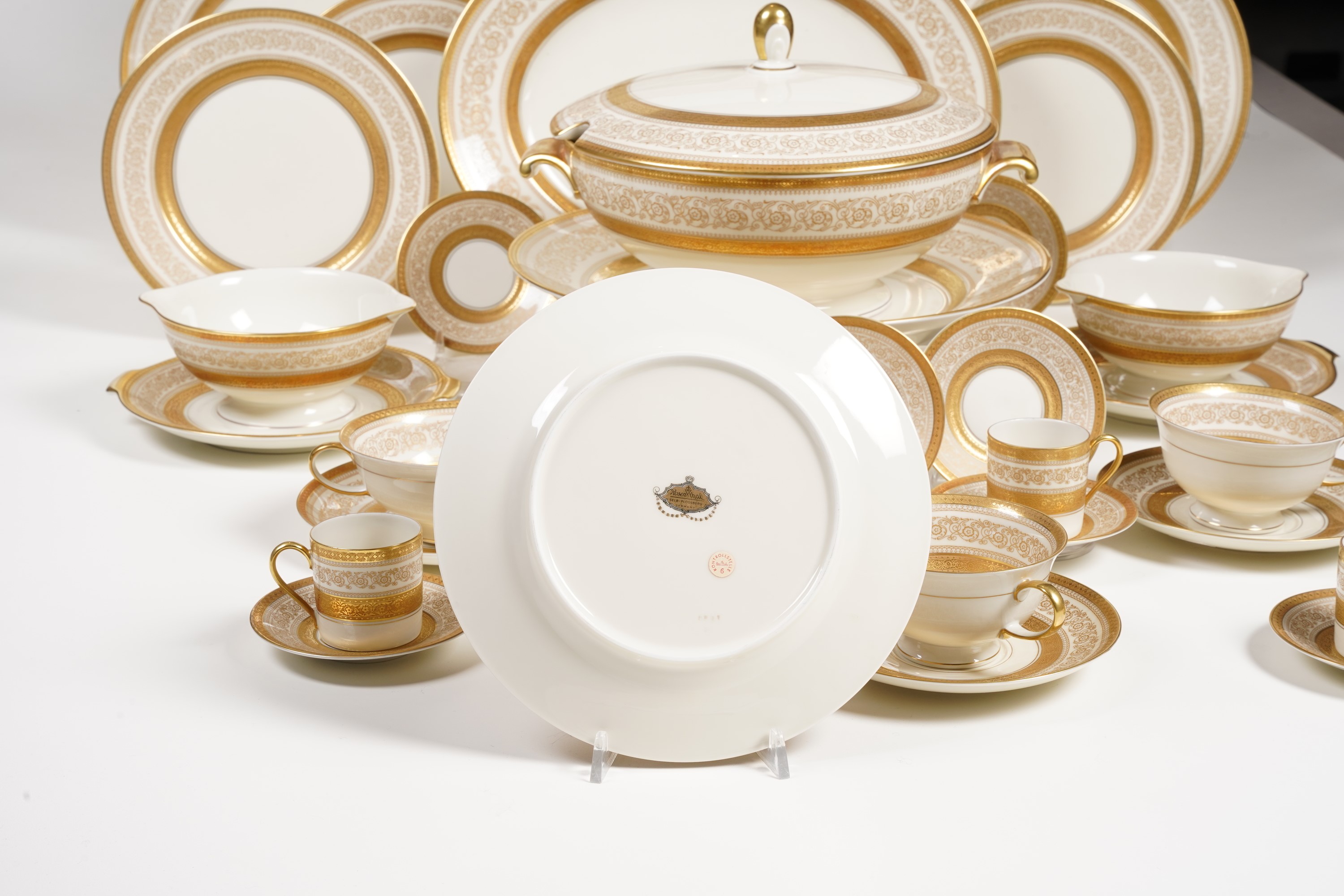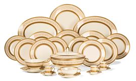 Il servizio per 24 persone conta 116 pezzi ed è così composto: 12 piatti fondi (diametro cm 24); 24 piatti piani (diametro cm 25); 24 piatti da antipasto (diametro cm 19); 12 piatti da dessert (diametro cm 21); 12 tazze da brodo con sottopiatto (altezza tazza cm 5,5; diametro piattino cm 17,5); 1 zuppiera (altezza cm 20; diametro cm 30); 1 insalatiera (altezza cm 10; diametro 25,5); 2 salsiere (altezza cm 9); 2 piatti da portata tondi (diametro cm 32), 2 piatti da portata ovali (cm 38); 12 tazze da caffè con piattino (altezza tazza cm 5,2; diametro piattino cm 11); 12 tazze da tè con piattino (altezza tazza cm 6; diametro piattino cm 6)