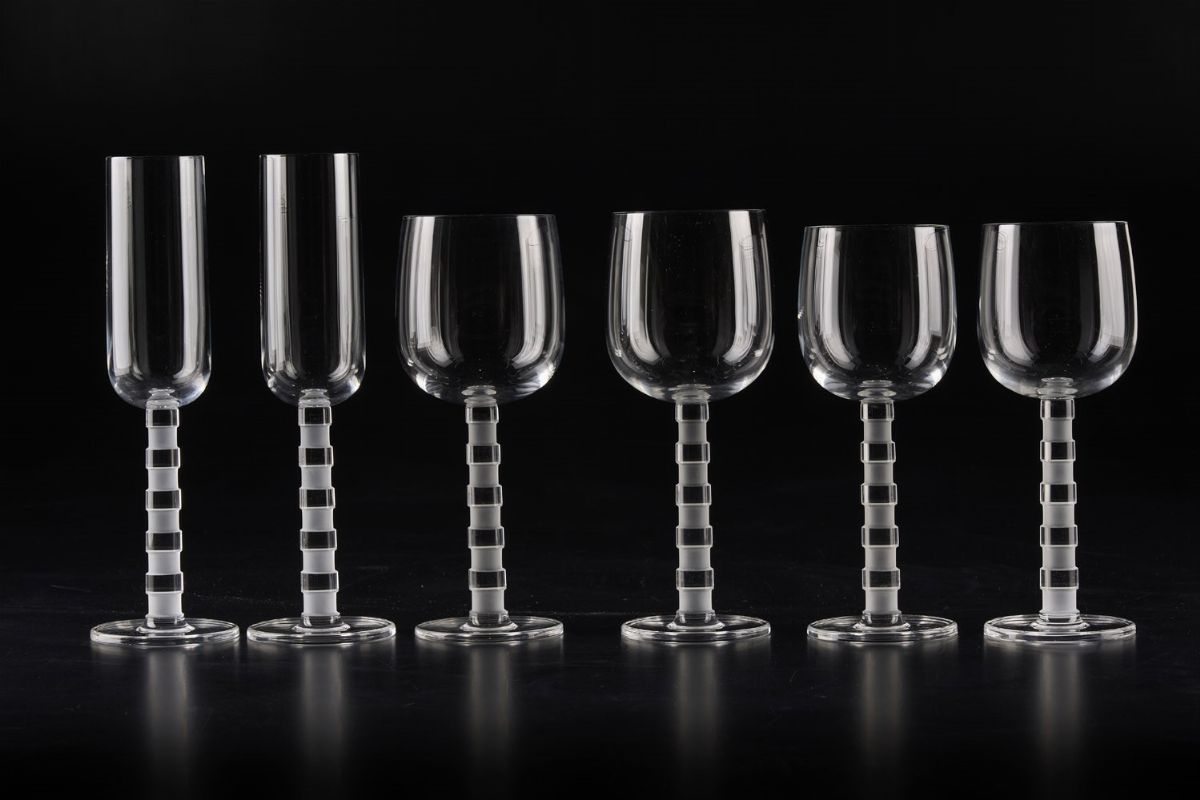 Servizio di calici “Bassorilievi” Murano, Manifattura Salviati, verso la fine del XX secolo Design di Johanna Grawunder