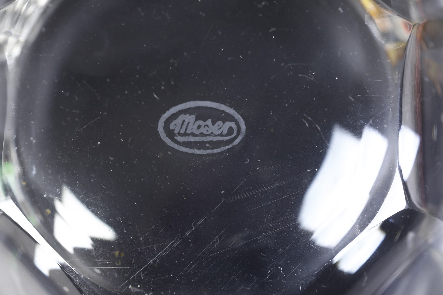 Cristallo. Marca: “Moser” inciso all’acido. Conservazione: 1 piccola sbeccatura su una coppa piccola e su un piattino; 2 piccole sbeccature su due coppe grandi