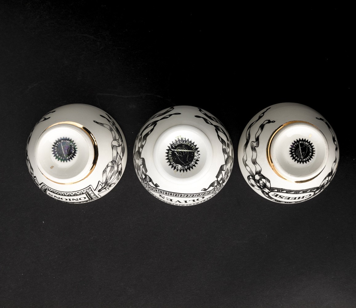 Tre ciotoline per antipasti Milano, primi anni'60 Design di Piero Fornasetti (1913-1988)