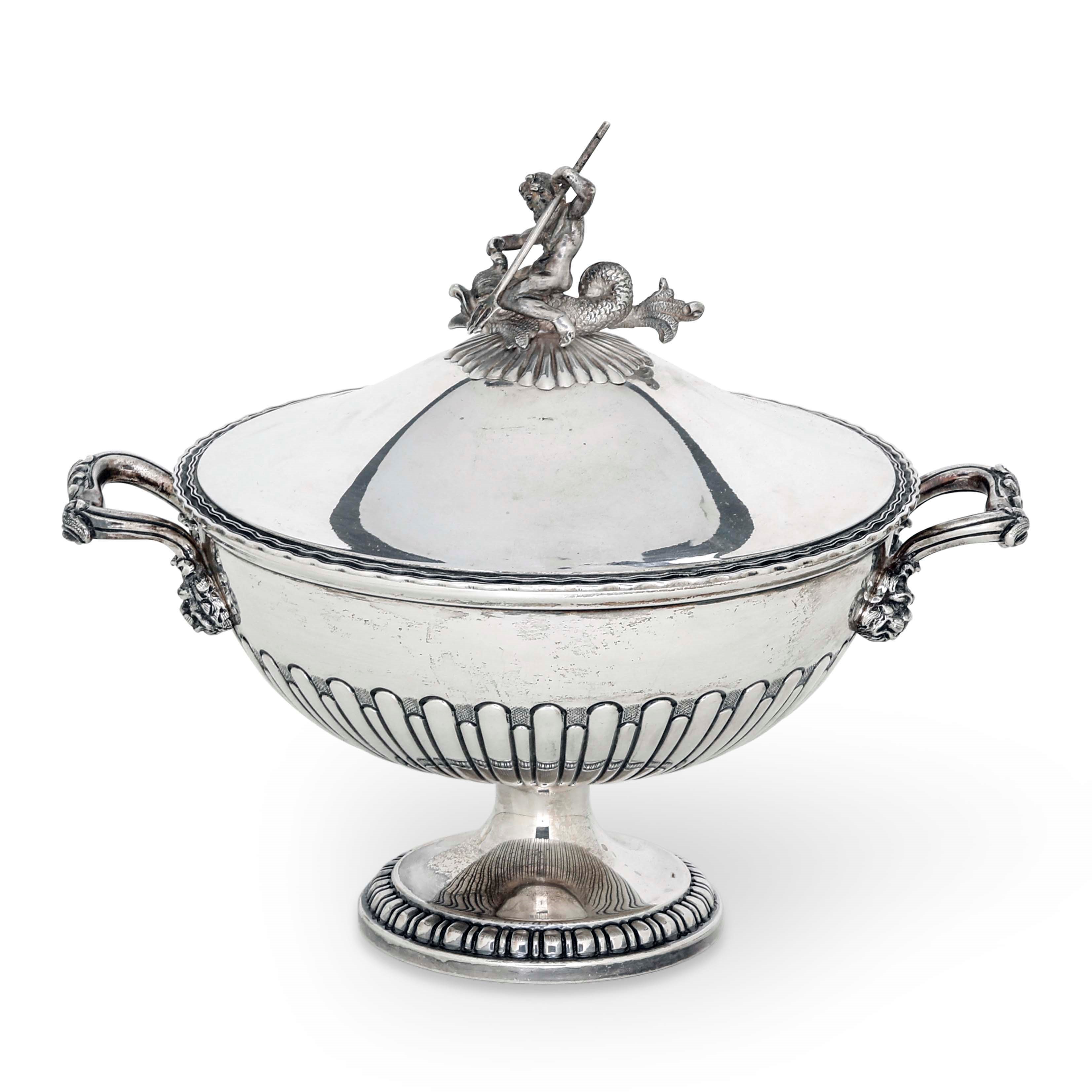 Zuppiera. Argenteria artistica milanese. Marchio con fascio littorio in uso dal 1935 al 1945. Argentiere De Leone