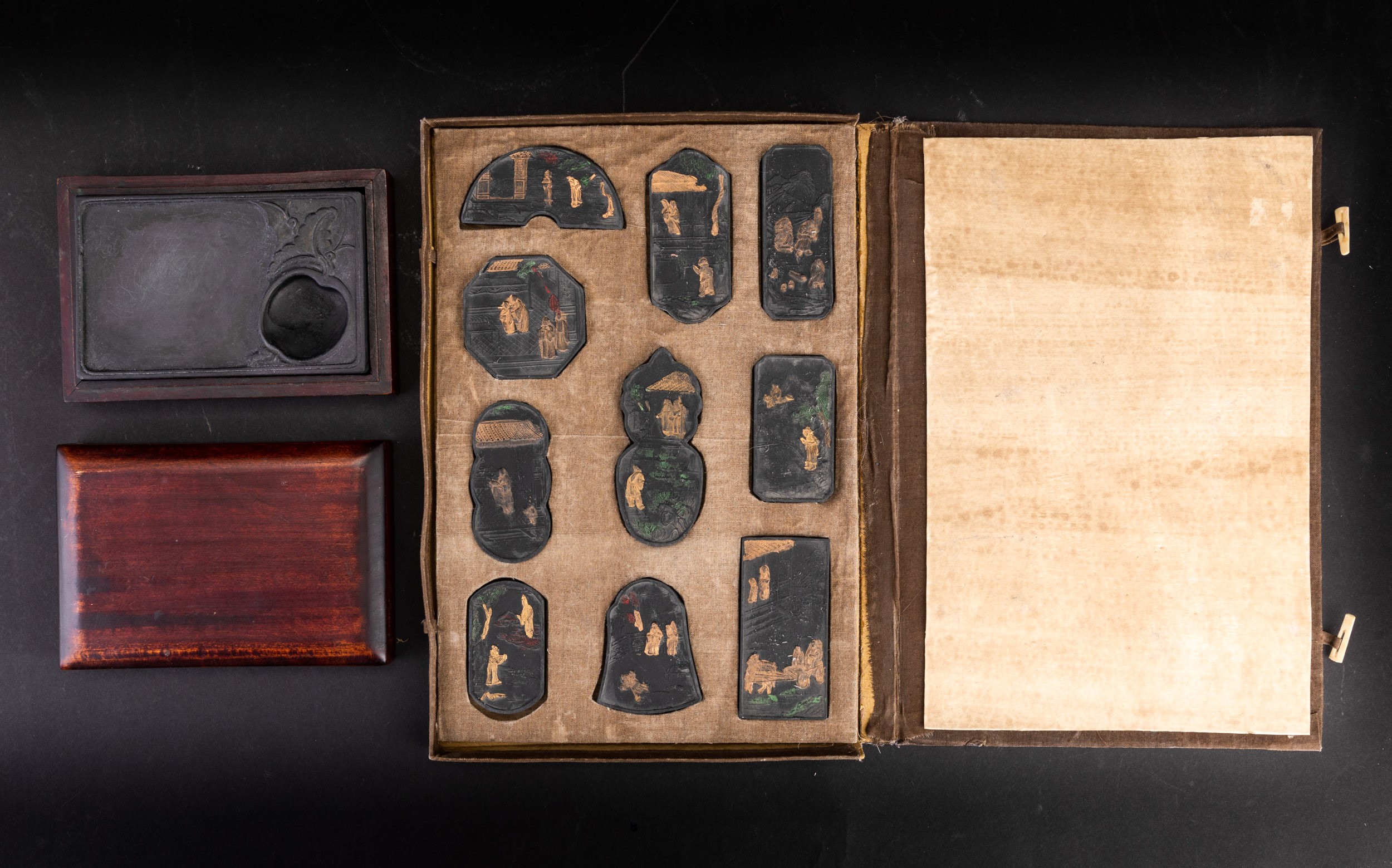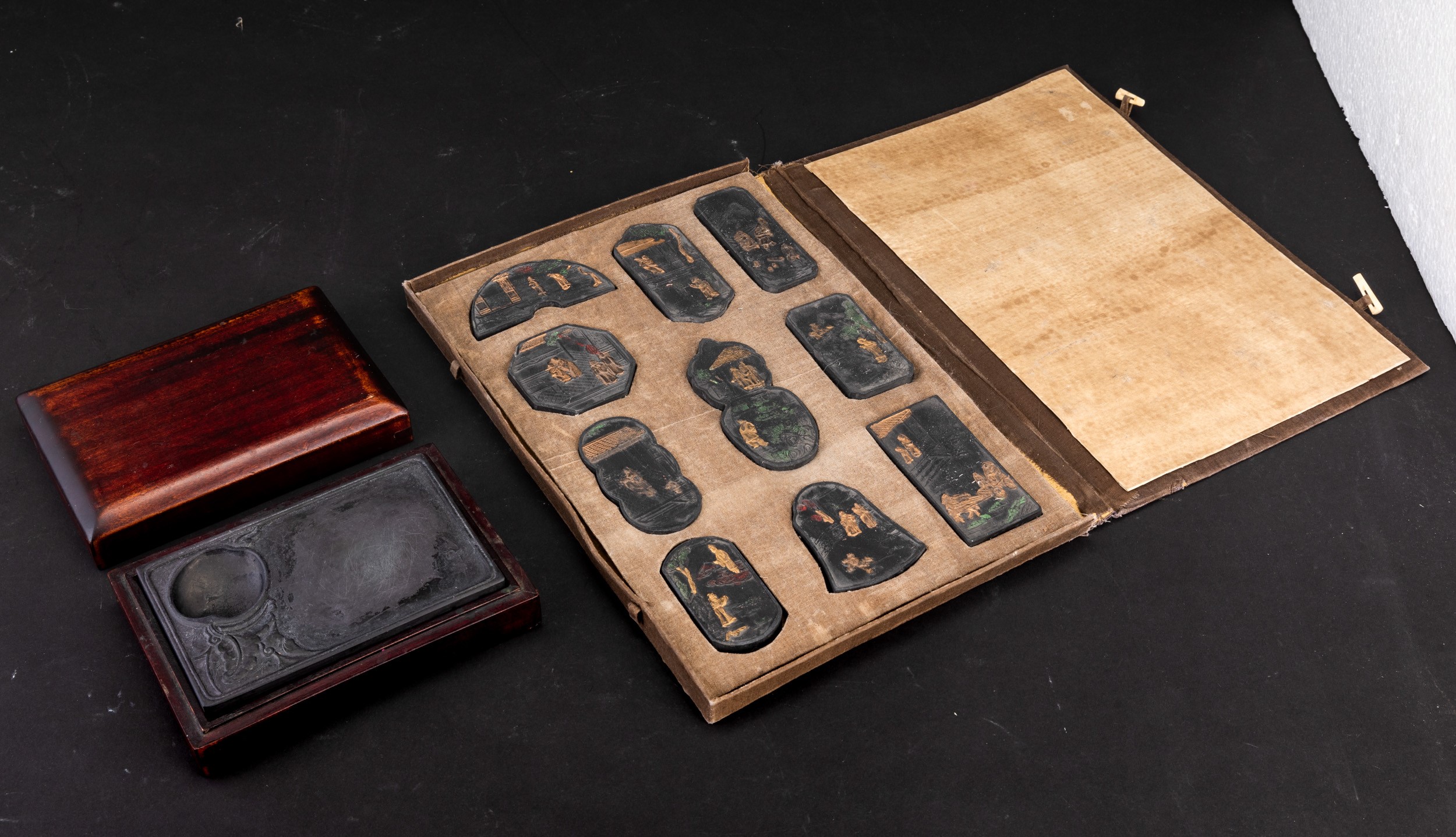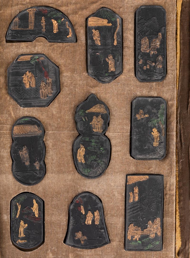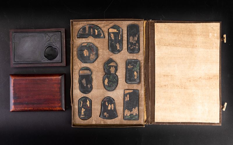 Lotto composto da pietra da inchiostro e dieci sigilli, Cina, Dinastia Qing, XIX secolo