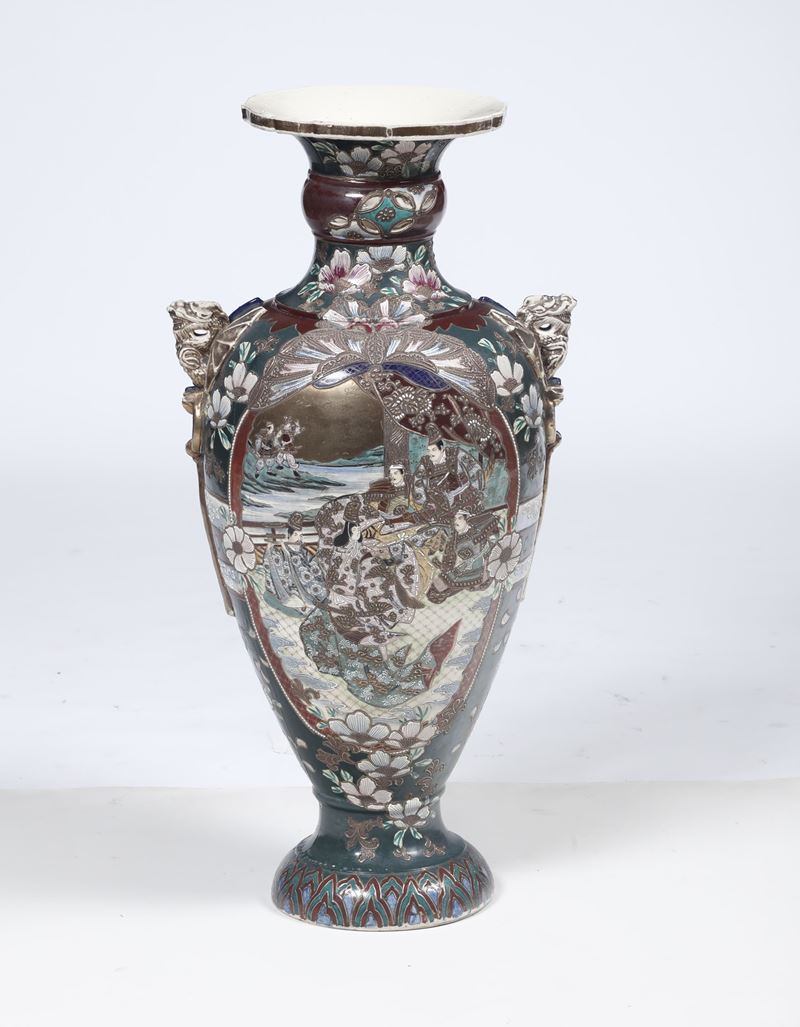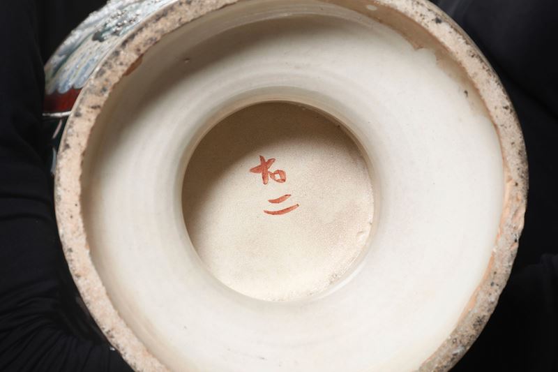 Vaso in porcellana con soggetti naturalistici entro riserve e piccole anse a foggia di draghetto, Giappone, XX secolo