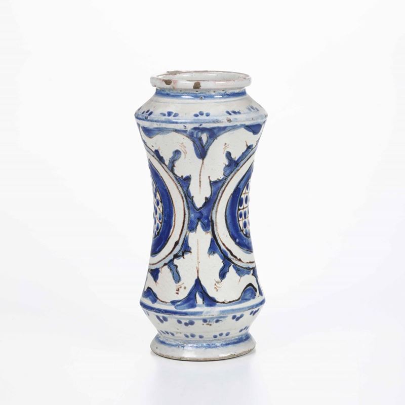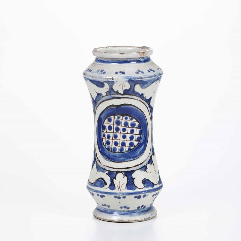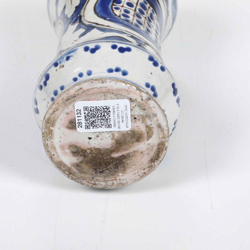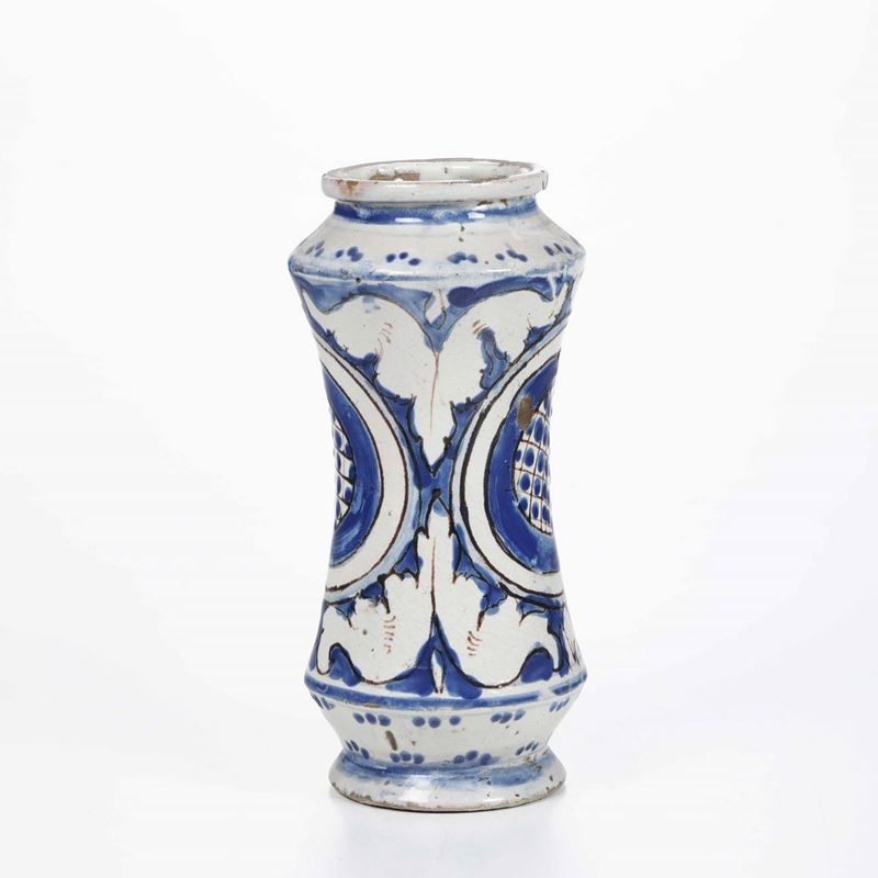 Maiolica decorata in monocromia blu di cobalto con tratti in manganese Altezza: cm 23. Conservazione: ottima