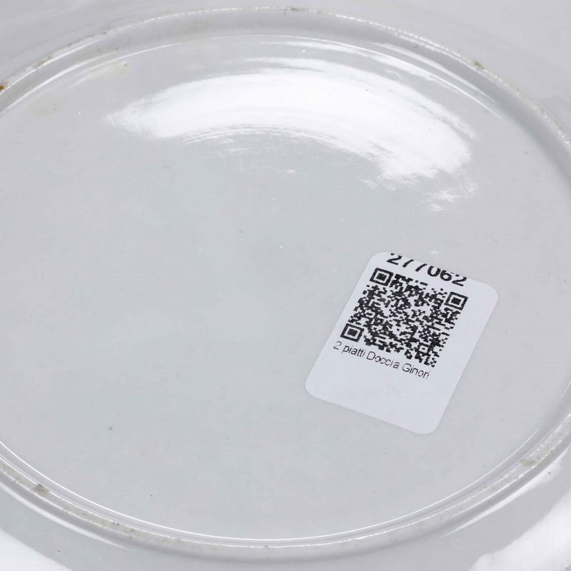 Coppia di piatti con decoro a “paesi rossi” Doccia, Manifattura Ginori, 1790-1800 circa