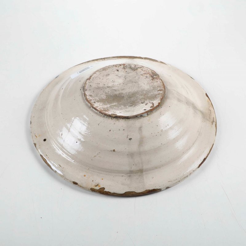 Maiolica. Marca: assente. Dimensioni: altezza cm 6; diametro cm 28,2. Conservazione: insignificanti cadute di smalto al bordo