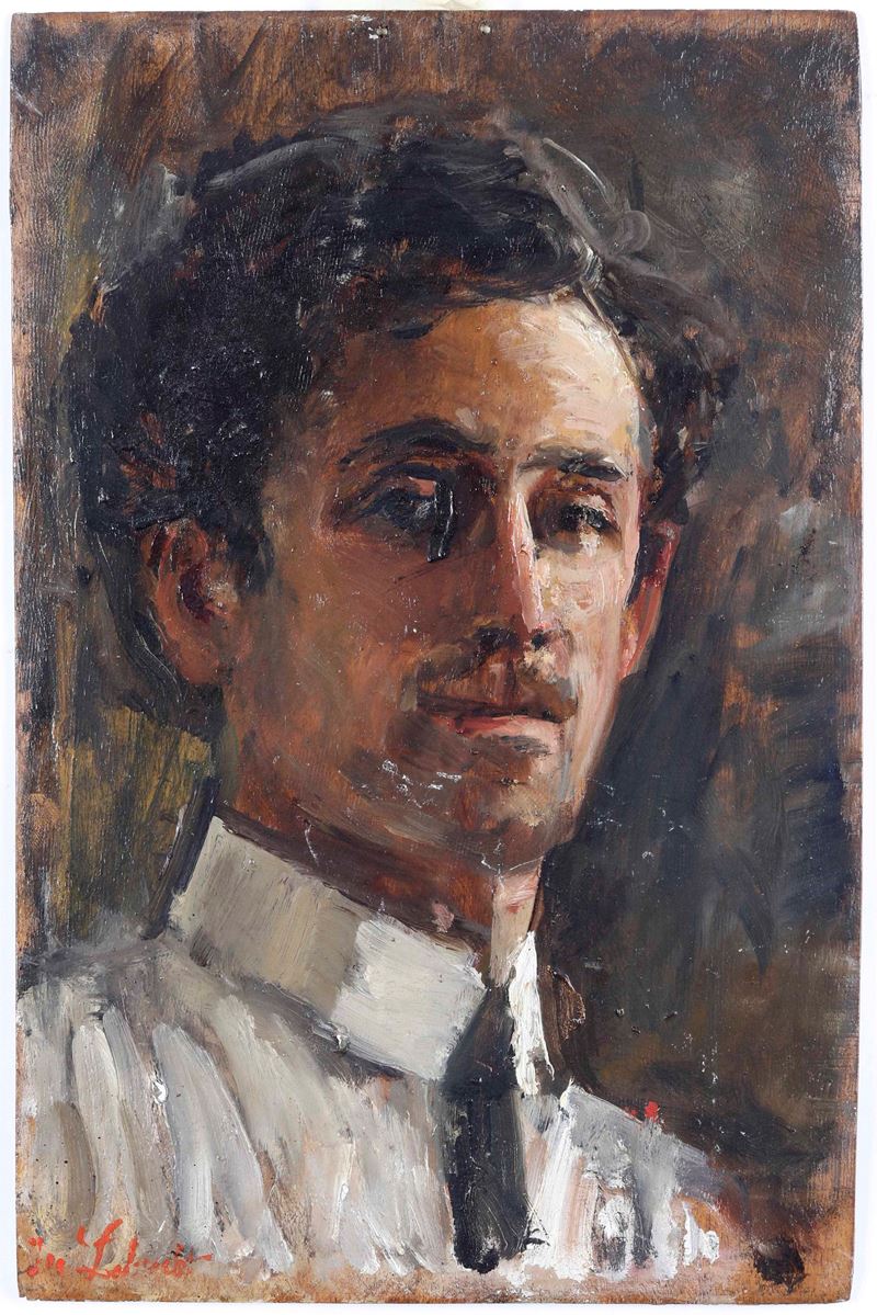 Due dipinti diversi di stesso autore con firma di difficile lettura Labuit? uno con cascina ed un ritratto maschile