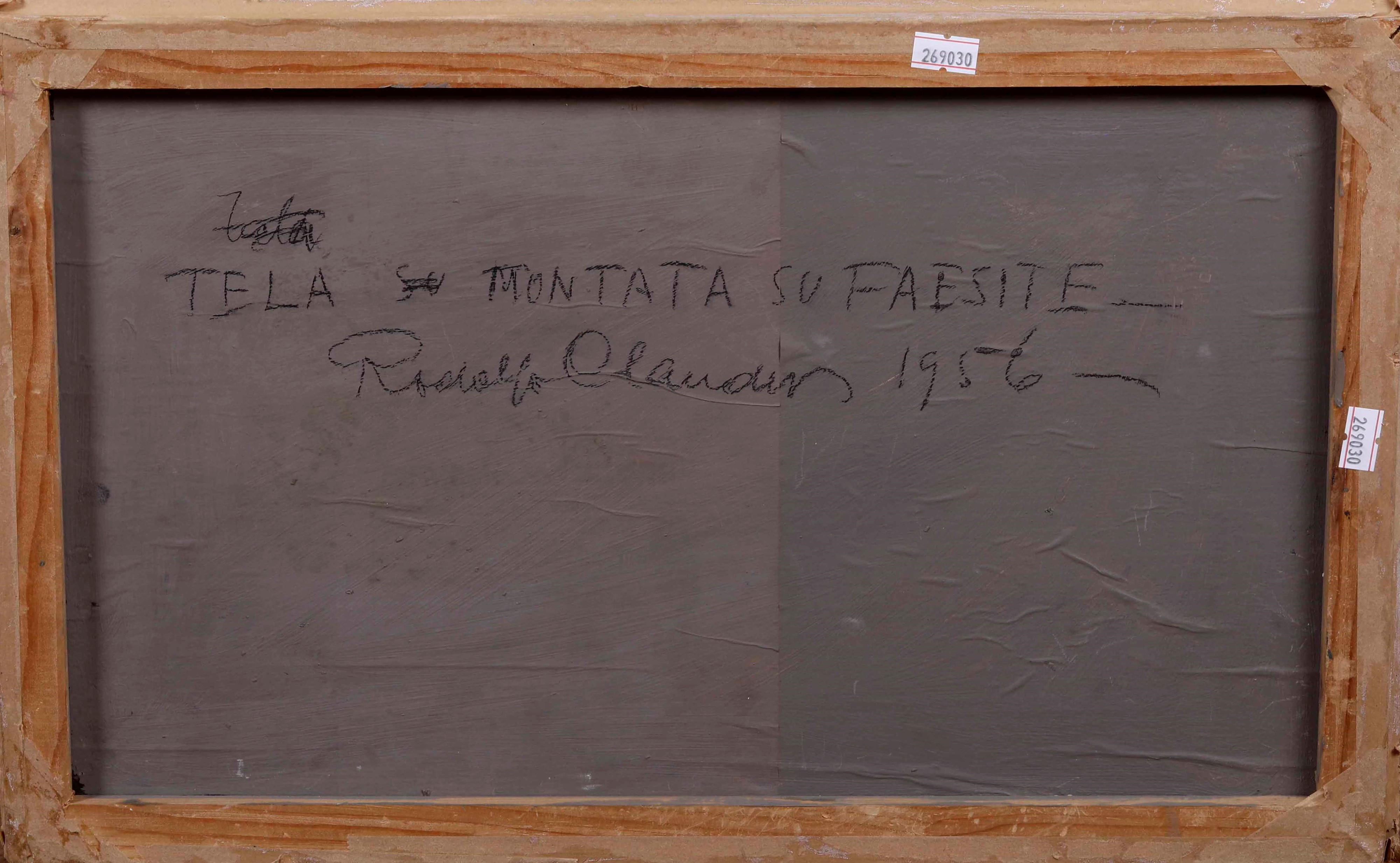 firmato e datato 1956 in basso a sinistra, iscritto al retro