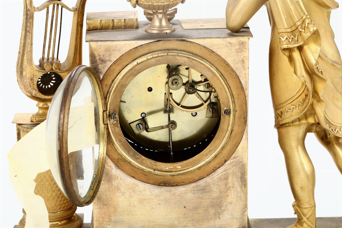 Pendola da tavolo in bronzo dorato e cesellato, Francia XIX secolo