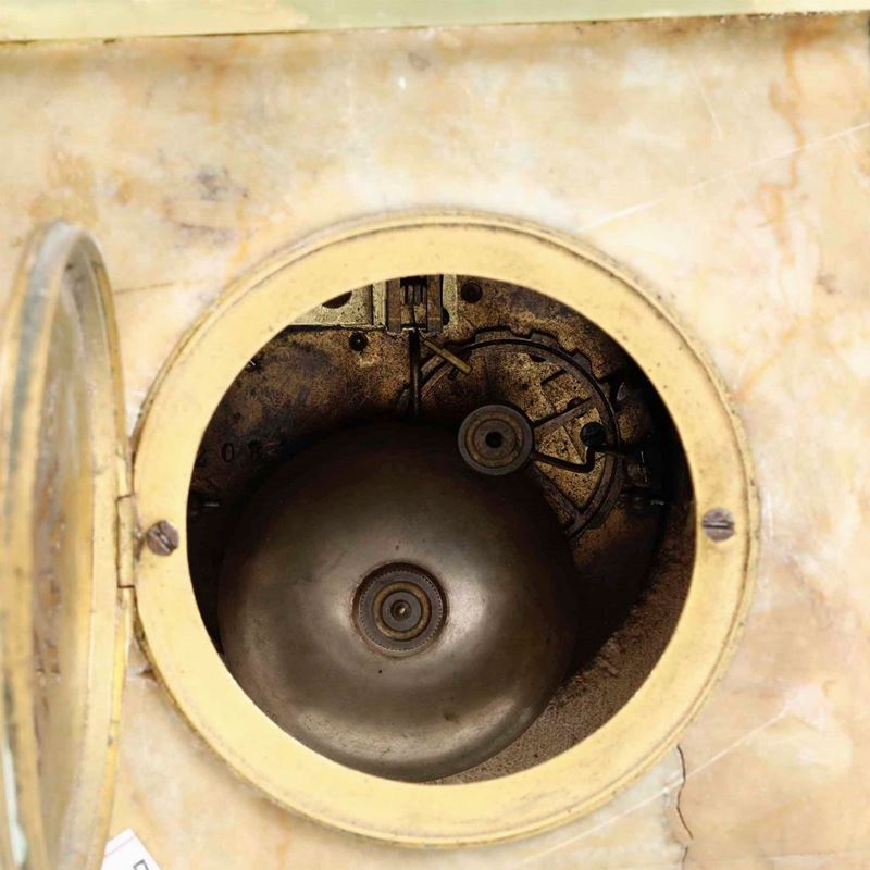 Pendola da tavolo in bronzo e onice. XX secolo